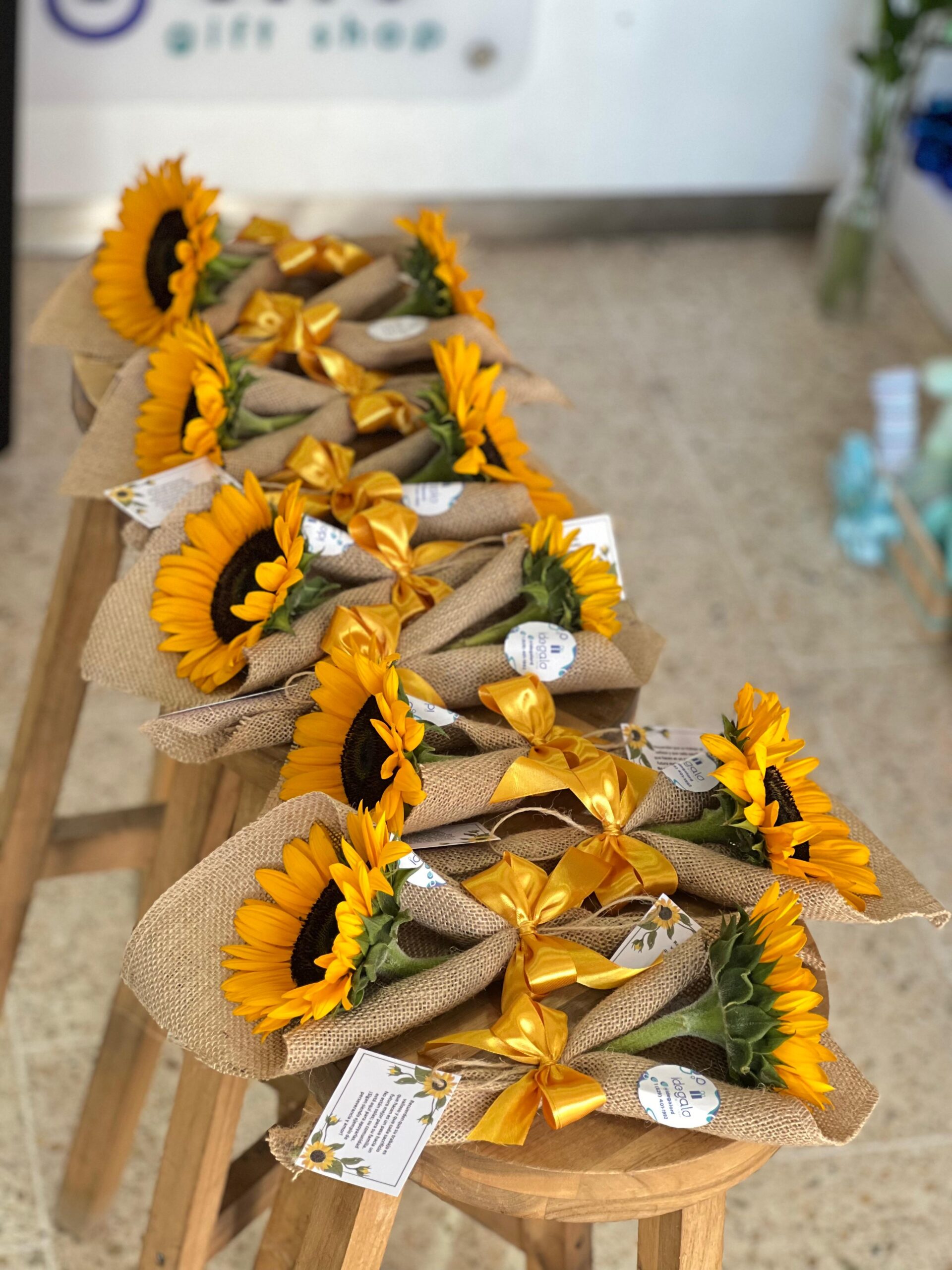 Descubre la sencillez que conquista corazones: un hermoso girasol en solitario, envuelto delicadamente en yute natural y adornado con un mini lazo a elegir. Este detalle único es el regalo perfecto para empresas que desean transmitir calidez, gratitud y energía positiva a su equipo o clientes. Su belleza sencilla pero impactante habla por sí sola, creando una conexión auténtica y memorable. Ideal para regalar a varias personas, este girasol solitario se convierte en un símbolo de luz y esperanza que alegrará cualquier espacio y fortalecerá vínculos. ¡Haz que cada obsequio cuente y deslumbre con este detalle cargado de significado!